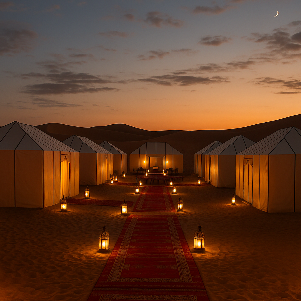 Join a 2-day group tour from Marrakech to the Zagora Desert and share the adventure with fellow travelers. Cross the spectacular High Atlas Mountains, stop at the famous Kasbah Ait Ben Haddou, and journey through the lush Draa Valley palm groves. In the evening, enjoy a camel ride at sunset before spending the night in a traditional desert camp under the stars. Wake up to a breathtaking sunrise, ride camels again, and travel back to Marrakech through Ouarzazate. This group desert tour is the perfect choice for those with limited time who want to experience the magic of Morocco’s desert at an affordable price.